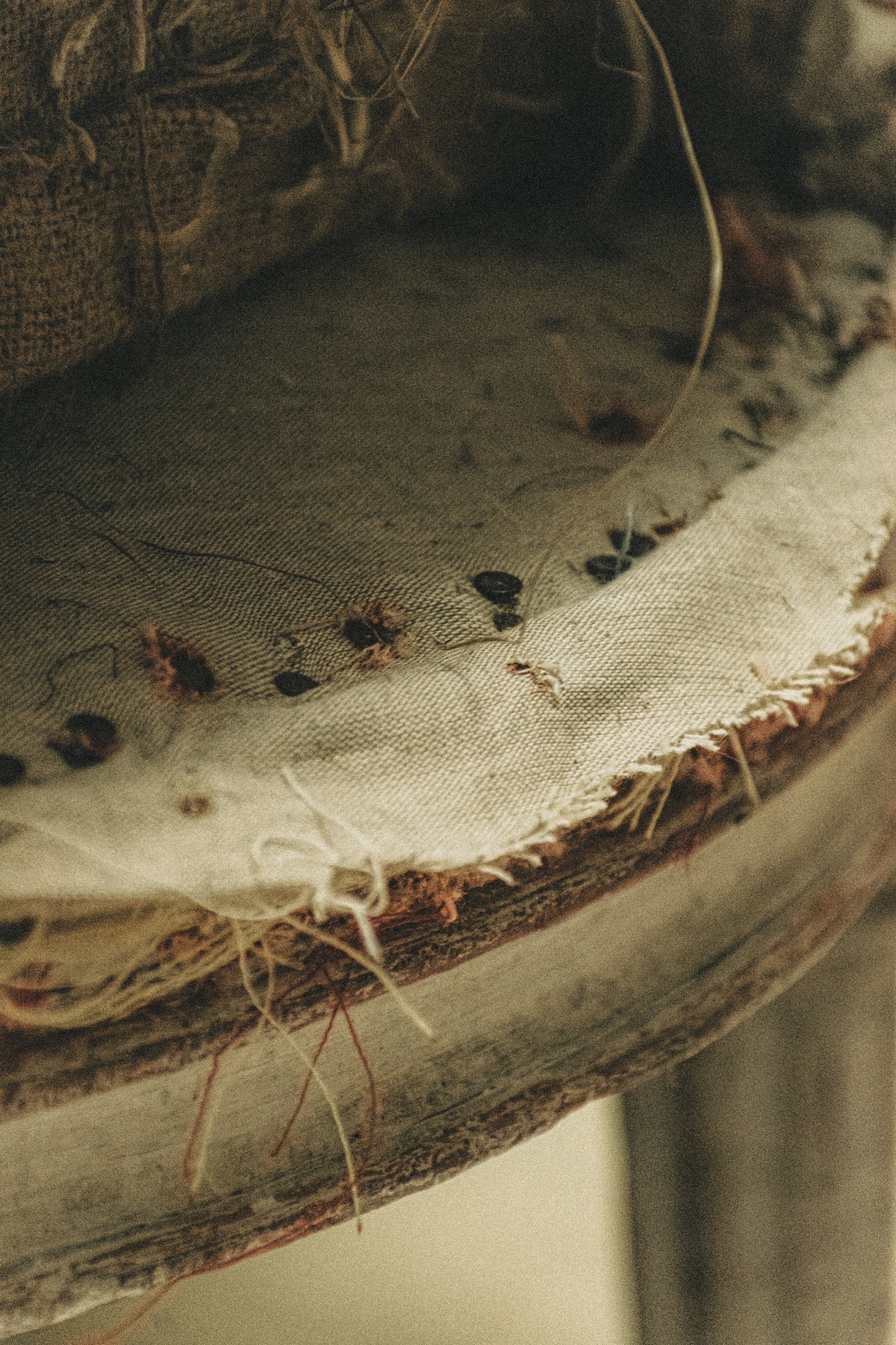 Laurence fige le temps en façonnant la matière. Depuis plusieurs années, c’est à travers son métier de tapissière qu’elle s’exprime, se raconte et crée. Autrement dit, un métier passion. J’ai eu le privilège de me rendre à son atelier à plusieurs reprises pour constater ce que ce métier pouvait apporter : un fragment d’histoire, de gestes et de tissu. C’est dans le sillage de ses doigts toujours affairés que j’ai découvert le travail par le toucher, la création de sens avec ses mains, et l’expression par la matière. Une définition de l’artisanat que j’aime me rappeler.